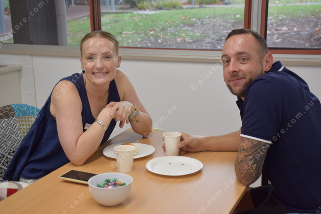 CUC manager Alyce Lotz and chamber committe member Dan Pfingst caught up over coffee while discussing training pathways and support available to local apprentices and tradespeople.