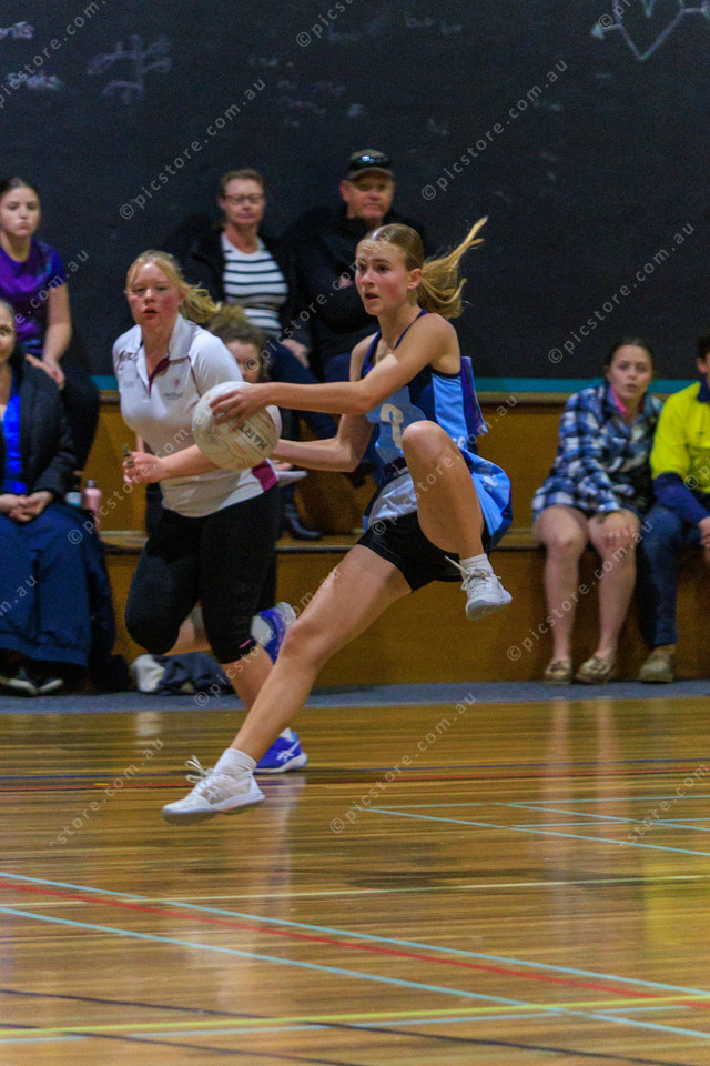 Sensations C Sophia Rowling and umpire Ash Petersen. Picture by Chris Munro