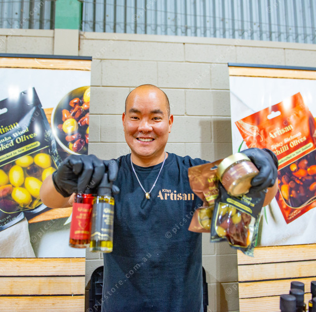 Simon Ryan of Kiwi Artisan showing off some of his produce. (Jack Church 536663_02)