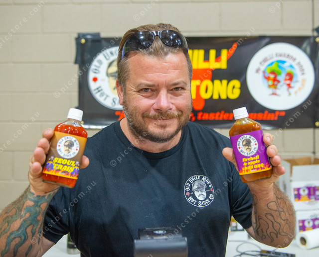 Kris Leighton of Old Uncle Moes with some flaming sauce. (Jack Church 536663_08)