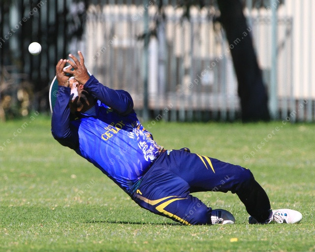 SPILLED: Mahela Undugodage gets in an awkward position and spills a catch in the deep. (PIC: PHIL WILLIAMS 487164_04)