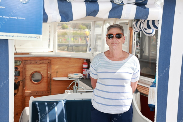 Goolwa resident Joan Shreeves with her wooden boat. 475029_03