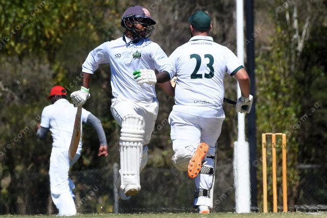 Garfield Tynong’s Kasun Ranasinghe and Sean Somers run between the wickets 464086_04