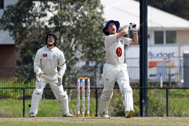 Samuel Batson skys it straight to Daniel Glover off the bowling of