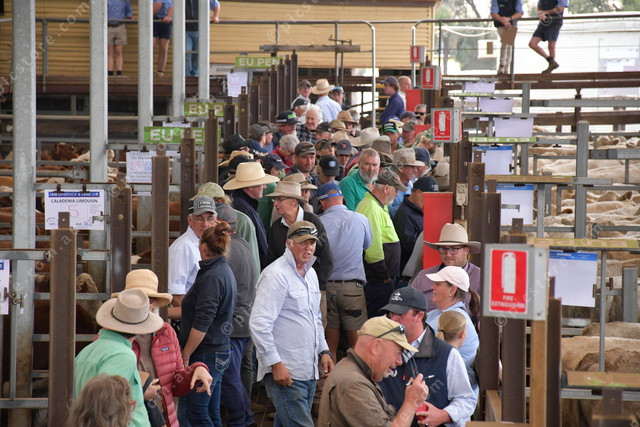 A large numbers of potential buyers were looking into the Hereford steers.