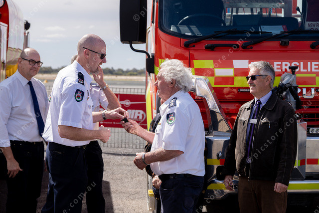 Group Captain Ray Hill receiving the keys to the new truck. Picture: Ben Gross