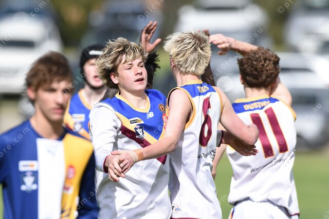 Ollie Ireland (18 Warragul Industrials, middle) I think he just kicked a goal in this pic. 504164_33