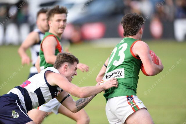 Jed Smith (5 NNG) chases Charlie Shinners (23 Tooradin) in the final quarter. 504161_40