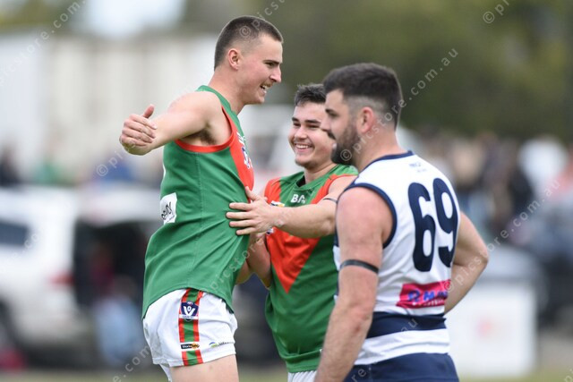 Ben Sellings (1 Tooradin, left) after his goal. 504162_20