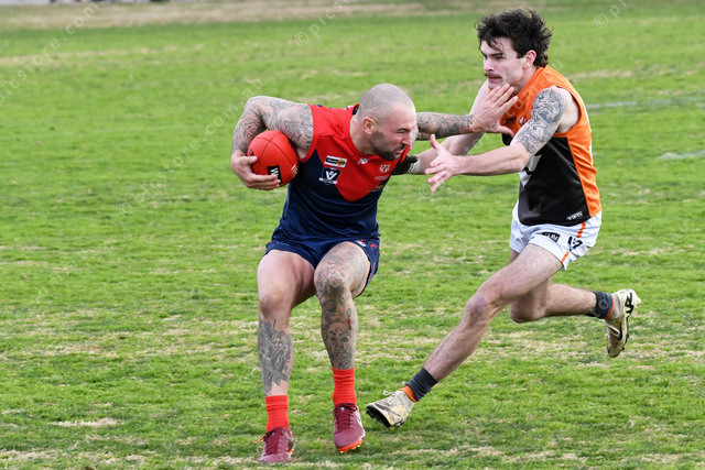 Nathan Muratore fends off but is caught holding the ball from the desperate tackle of Lachlan Smith 490833_12
