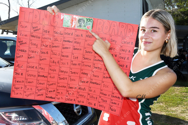 FOOTY SHORTS Chloe Thompson with the Tooradin netty end of year trip fundraiser initiative. 471323_05