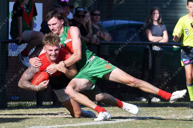 Logan Downe tackles Tyson Twite on the boundary line 471323_20