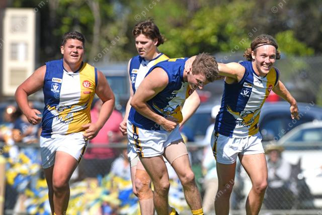 Reserves, Zachary Caughey (15 Inverloch-Kongwak, right) after his goal. 361010_08