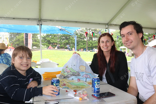 Andre Brednhann, Chloe Zuppicich and Luca Bredenhann colouring in a kite together.