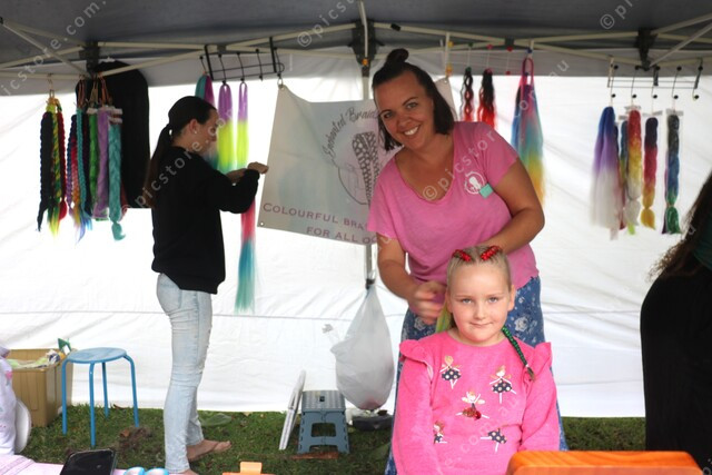 Scarlett Findlay getting her hair done by Katrina Harney from Encanted Braids.