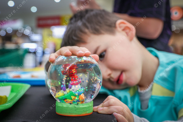 3yo Eli from Pakenham who made a Snow Globe with a Snowman inside made with Plasticine.