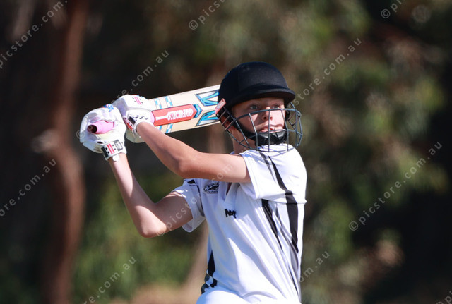 Sending a ball toward the boundary is Goolwa Junior Colt Fletcher Jones. (Jesse Ehlers 529332_02)