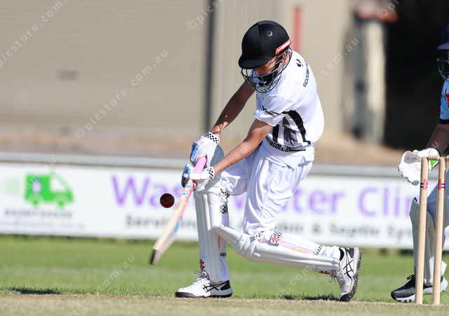 Fletcher Jones has his eyes on the ball for Goolwa in the Junior Colts match against Victor Harbor. (Jesse Ehlers 529332_04)