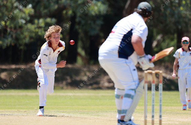 Colby Endersby watches as his ball flies toward the stumps. (Jesse Ehlers 529332_18)