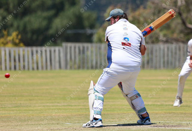 Jake Grenfell winds up to smoke the ball to the fence. (Jesse Ehlers 529332_23)