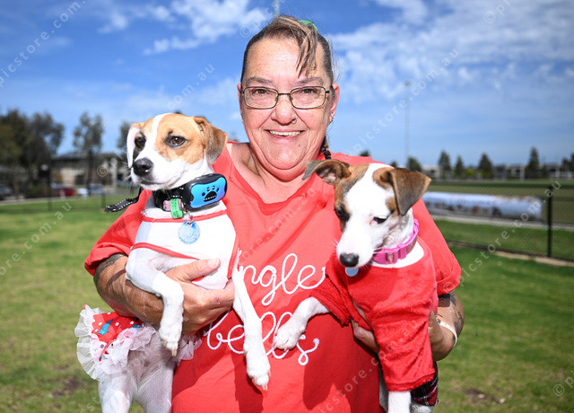 Xmas dog party. Pic of Sharon Warren with heir dogs Honey and Cheeky. (Damjan Janevski). 522006_04