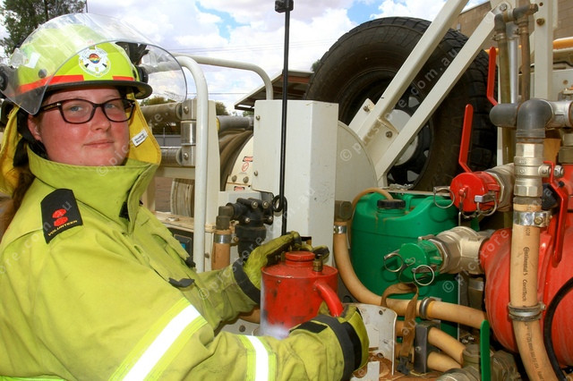 CHECK: Marie Baptista with some fire equipment used in back burning operations. (PIC: PHIL WILLIAMS 465716_09)