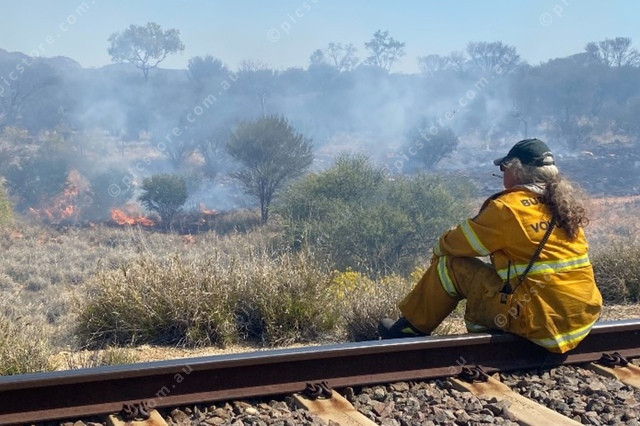 SURVEY: Jen Hamilton takes a moment while assessing the situation on an active fireground. (PIC: NTFES)