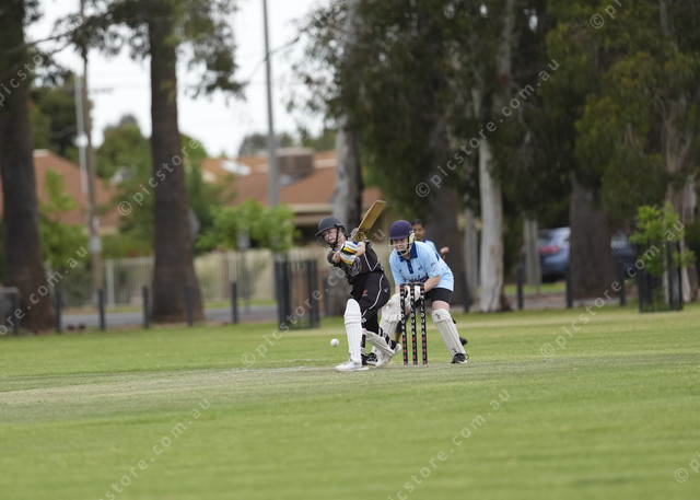Eden Trinick in batting action at the match between Mildura Settlers CC Women and Merbein CC Women at Mildura Senior College in Mildura on Friday 24 October, 2025.