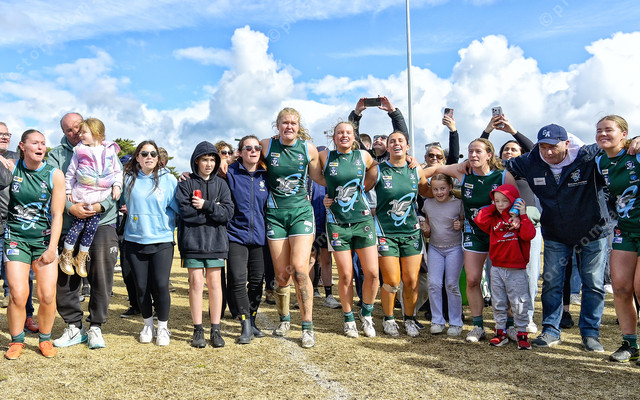 Coach Tash Irvine sings the club song with players and fans (Ivan Kemp) 499130_35