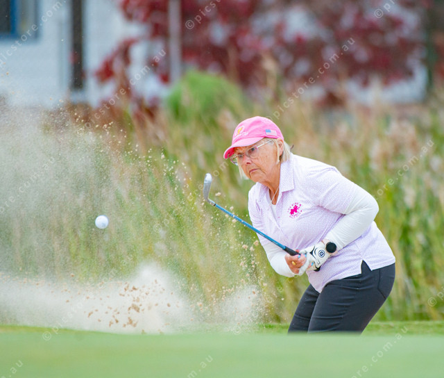 Debbie Gill hits a cracking shot out of the bunker at South Lakes. (Jack Church)