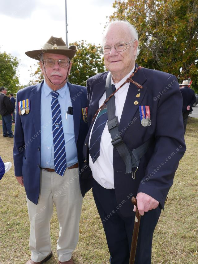 Bruce Webb from Nanango with the Reserve Forces Day Wondai event coordinator Noel Selway from Wondai. 488651_03