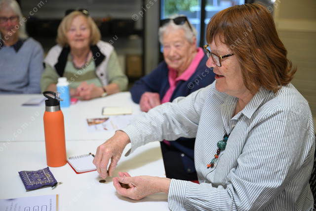 Woodend Neighbourhood House, Woodend Seniors Group playing Button Bingo. Pic of Pauline Edwards. (Damjan Janevski). 532179_02
