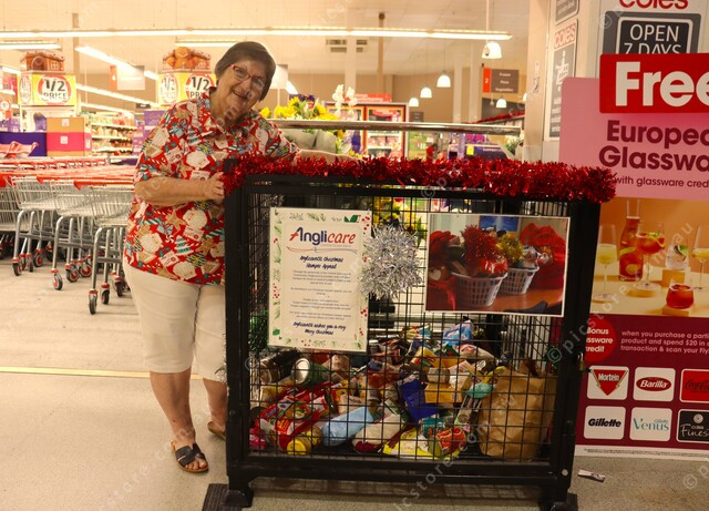 Diana Wode with Coles grocery cage