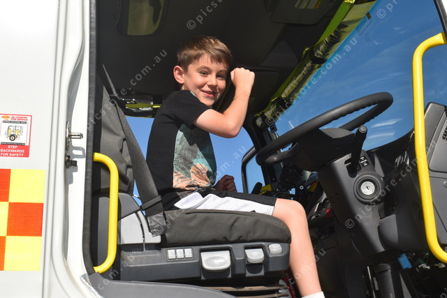 Logan Mohor poses in the driver’s seat of the CFS firetruck. (524589)
