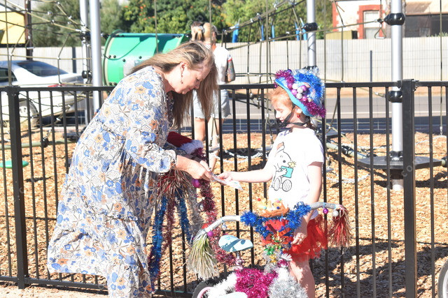 Penny Pratt presents an award for decorated bike to Ava Drescher. (524589)