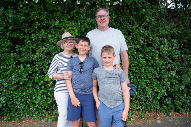 Patsy Murray, of Normanville, William and Hamish Houghton, of Perth, and Archie Murray, of Normanville, watch the race at Yankalilla. (Dani Brown: 454377_02)