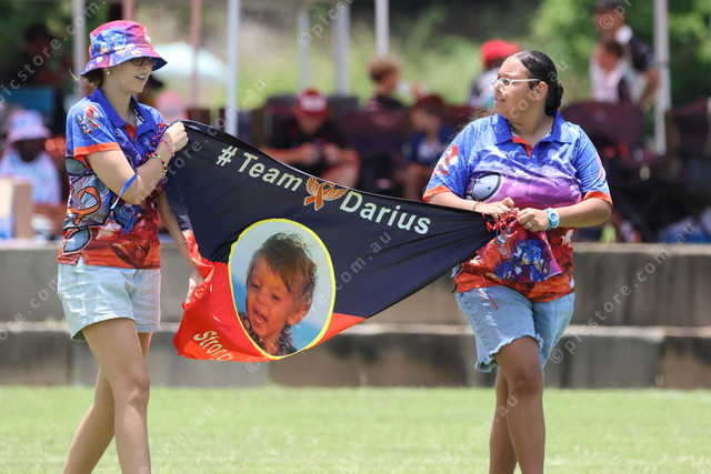 Team Darius fly their flag onto the field.