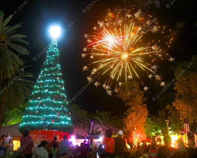 COLOUR: Colour busts above the massive crowd on the council lawns as the town Christmas Tree lights. (PIC: PHIL WILLIAMS 448735_03)