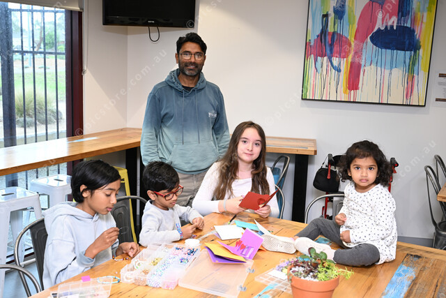 Xmas craft market. Pic of the organiser Jay Aggarwal, with the young participants: Ria (10), Revyn (6), Ahries (11) and Rayna (2). (Damjan Janevski). 515442_03