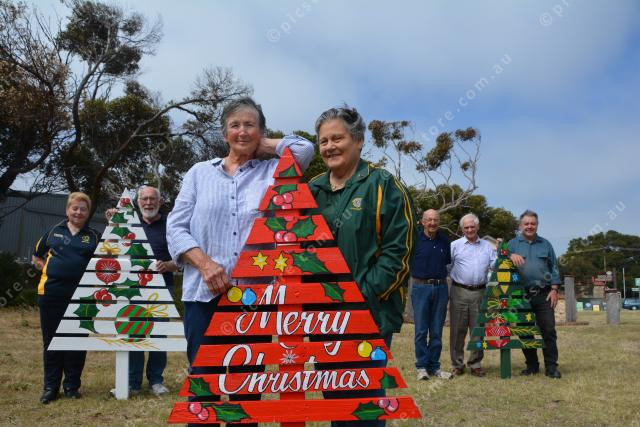 Goolwa artist and Tidy Towns member, Anne Hockey and Goolwa Lions president, Kath Sargent with Lorraine McDonnell, Coorong Quays Community Shed’s John Philips, Brian Shepherd, Ron Sargent OAM and Chris Rathbone. Photo: Emma Heidenreich 376953_01