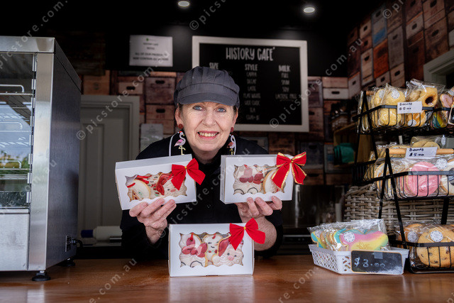 SRS Benetook Farm cafe manager Jenny Lambert with her Christmas biscuits. Picture: Ben Gross 515768_06