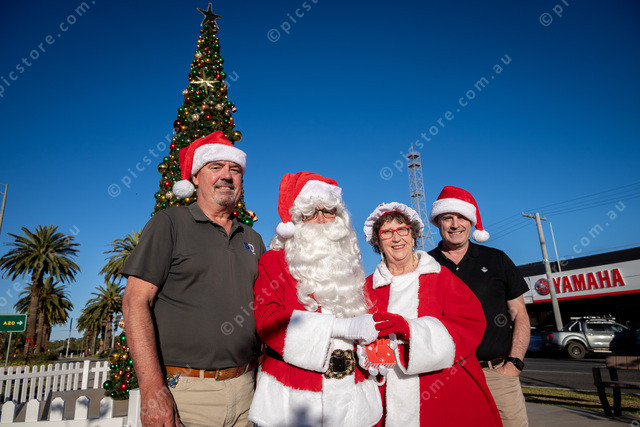 Greg Herrick from the Sunraysia Daily with Santa, Mrs Claus and MRCC CEO Martin Hawson. Picture: Ben Gross 520053_03