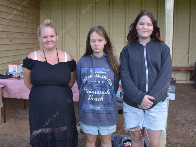 Kelly and Lacey Brown, Klarrah Dunshea stand in front of their stall. 461433_01