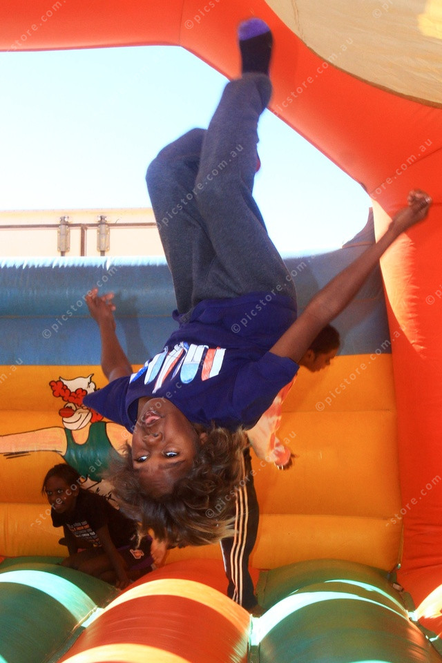 TRICKS: Meholey gets clever with a trick on the bouncy castle. (PIC: PHIL WILLIAMS 486938_07)