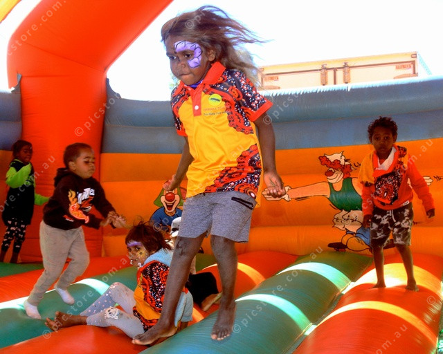 BOUNCE: Kaomi Kingsley gets some spring in her step on the bouncing castle. (PIC: PHIL WILLIAMS 486938_08)