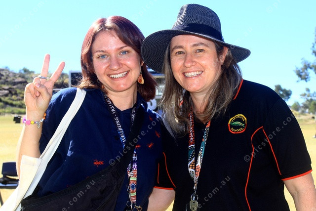 STAFF: Yipirinya School Staff members, Aylja Freeborn and Carolyn Donovan having a good time at the family day. (PIC: PHIL WILLIAMS 486938_10)
