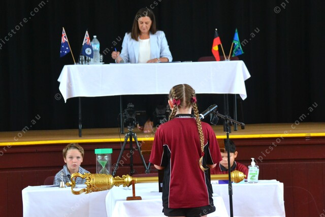 This Taabinga State School student delivers her speech to the Speaker, Deb Frecklington. 467020_11