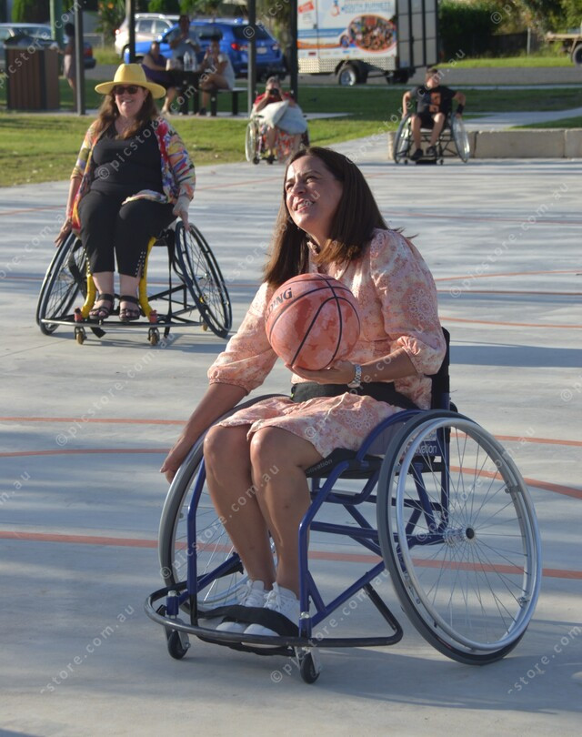 Deb tries her hand at wheelchair bascketball. 458596_06