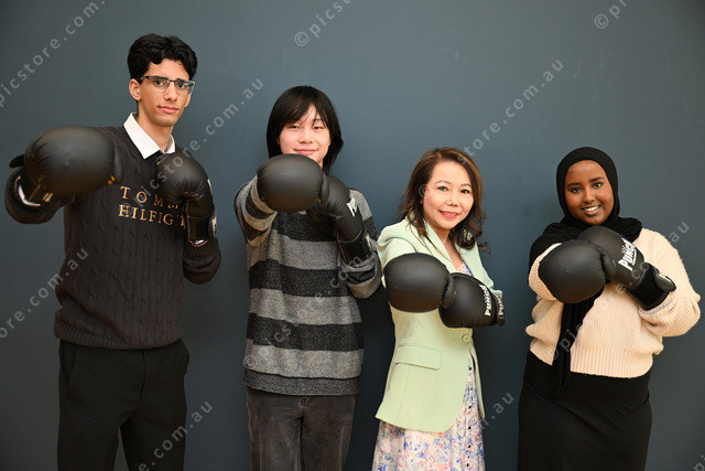 Pic of Shivam Palta, Ryan Le, mayor Cr Thuy Dang and Fartun Said. (Damjan Janevski). 494923_05