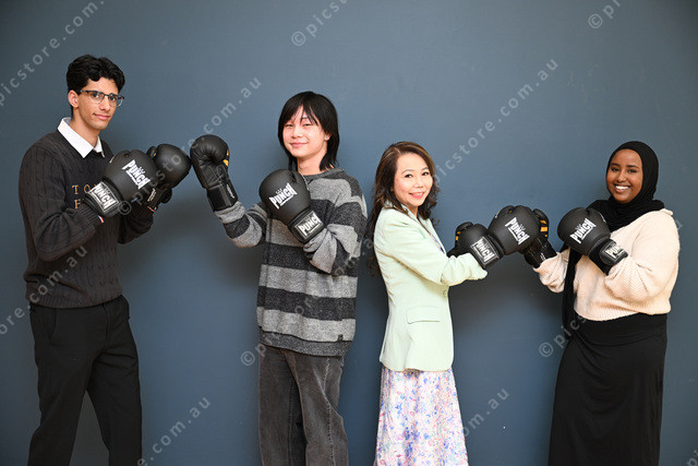 Pic of Shivam Palta, Ryan Le, mayor Cr Thuy Dang and Fartun Said. (Damjan Janevski). 494923_06